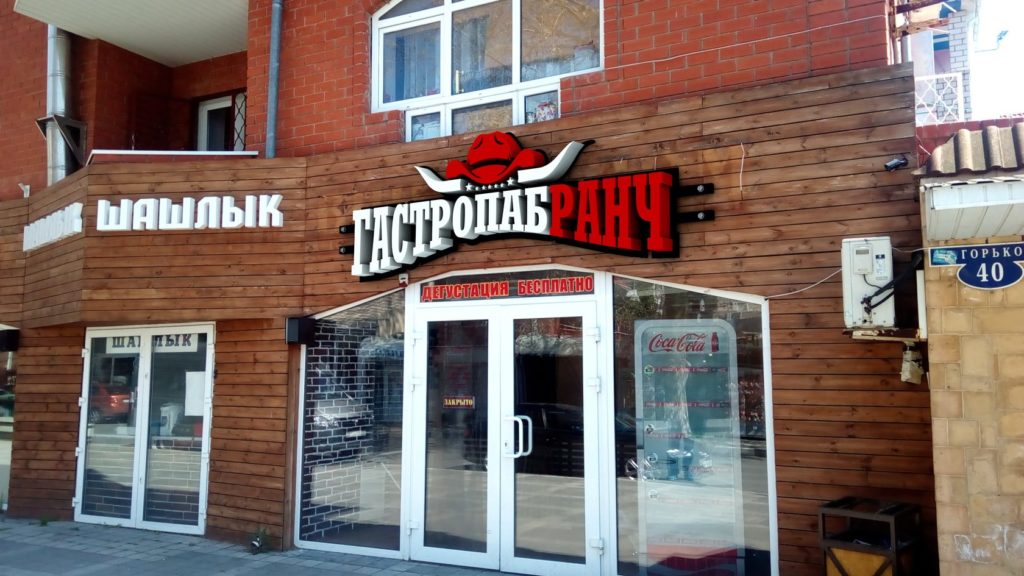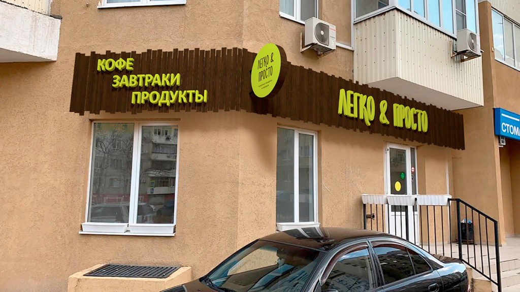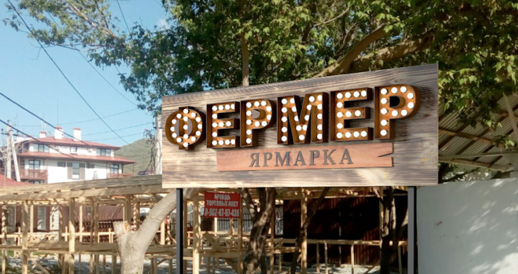 Изготавливается из композитных панелей с прорезями под инкрустацию из оргстекла. Подсветка — двусторонняя.